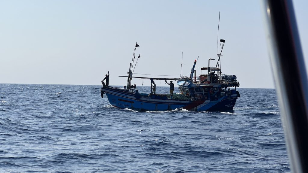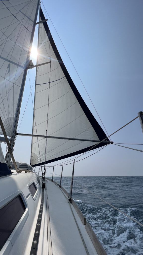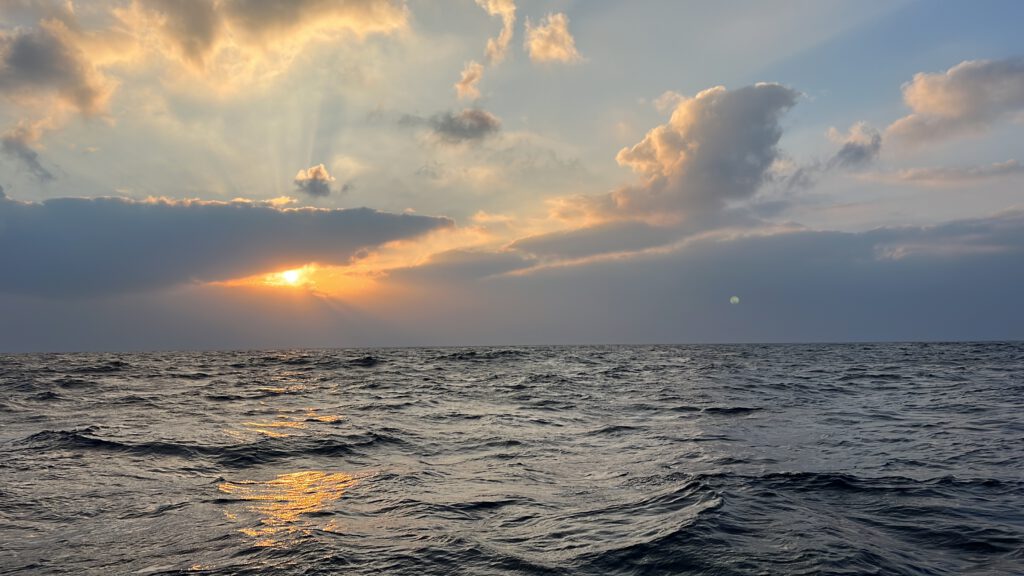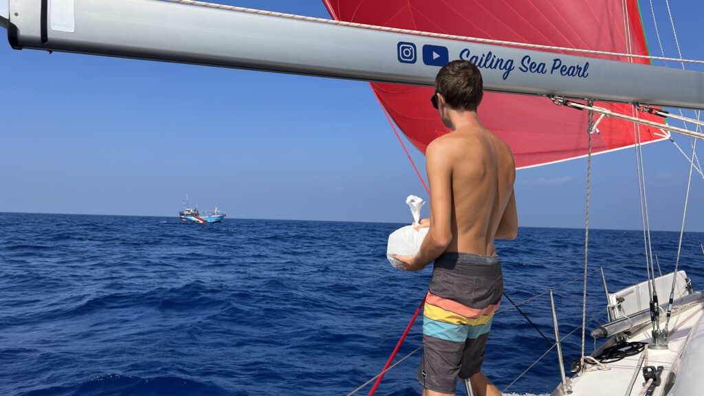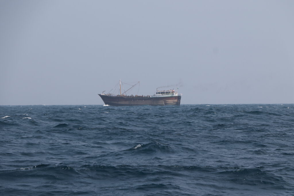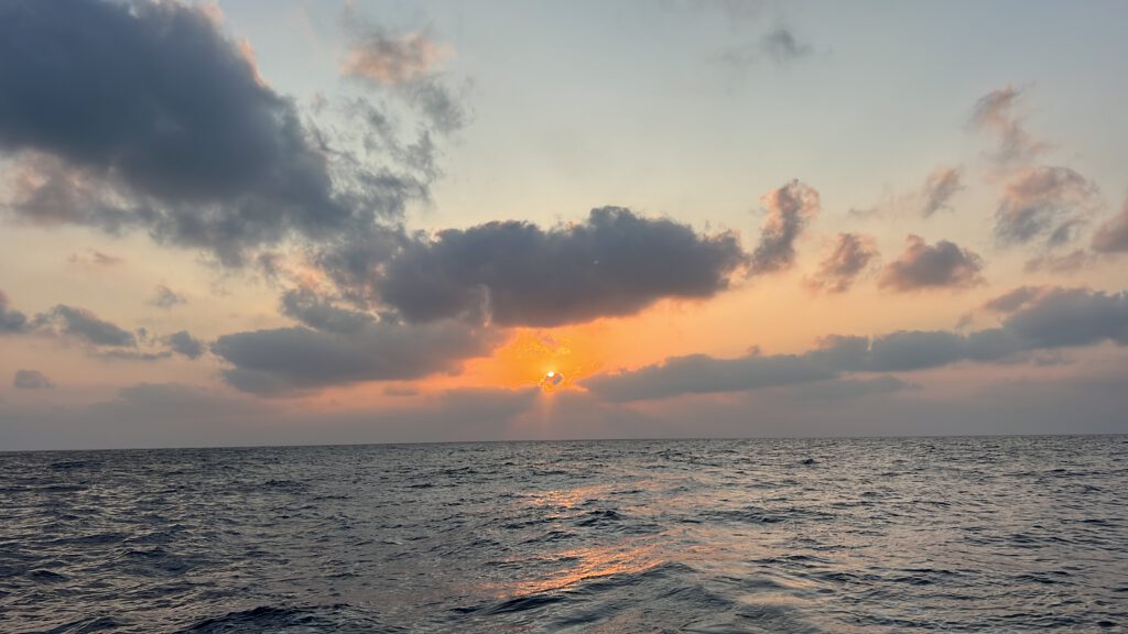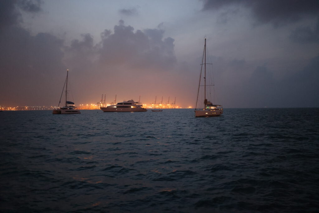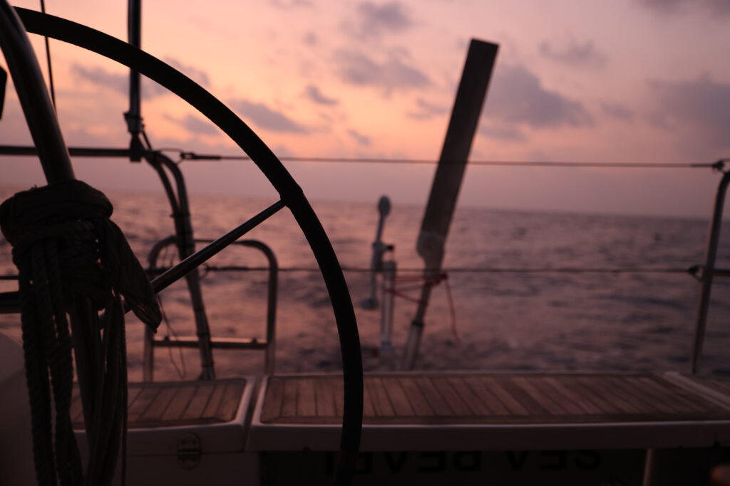Auf unserem Stopp im Norden der Malediven vor der Insel Uligan konnten wir richtig Kraft tanken. Die Zeit war gespickt mit Ausflügen, Familienzeit an Bord und hat sich deshalb nach Urlaub angefühlt. Diese Erholung haben wir aber auch gebraucht. Nach unserer schnellen Fahrt entlang der südostasiatischen Halbinsel und dann über die erste Hälfte des indischen Ozeans, vorbei an Sri Lanka und Indien steht jetzt eine besondere Passage an. Auf Nordwestkurs von den Malediven geht es in Richtung des Golfs von Aden. Unser Ziel soll nach knapp zwei Wochen dann Djibouti am Eingang des Roten Meeres sein. Die Strecke führt uns damit vorbei am Horn von Afrika und damit dem Land Somalia. In den vergangenen zehn Jahren gab es ausgehend von Somalia leider immer wieder teilweise sehr aggressive Piraterie, die sich selten aber doch auch auf Segler fokussiert haben. Mit dem Timing unserer Passage im März 2023 haben wir dabei richtig viel Glück. Gerade war die Pirateriegefahr durch massive militärische Präsenz etwas reduziert und die auf die Attacken der Hamas am 7. Oktober des gleichen Jahres und entsprechende israelische Vergeltungsschläge folgenden Angriffe des jemenitischen Huthi-Milizen auf Schiffe noch nicht passiert. Kurz vor unserer Passage wurde das entsprechende Seegebiet von den internationalen Sicherheitsbehörden deshalb von einem Hochrisikogebiet zu Risikogebiet herabgestuft und wir uns deshalb überhaupt getraut diesen Weg einzuschlagen. Trotzdem sind wir vor dieser Passage wohl so angespannt wie noch nie. Nicht, dass wir besondere Bedenken wegen des Wetters hätten. Der Nordindische Ozean gilt um diese Zeit als ein sehr angenehm zu bereisender. Es drohen keine starken Stürme, die Passatwinde wehen eher gemächlich und entsprechend gehört das Wellenbild zum angenehmsten, was uns auf der Reise am offenen Ozean begegnet ist. Aber es besteht immer noch eine Gefahr für Piratenangriffe und entsprechend angespannt ist die Stimmung.